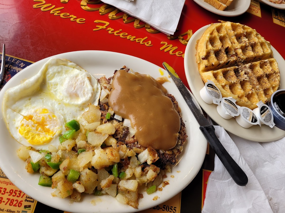 Came here without any expectations. It’s a small mom and pop local diner that I think is catered for older people. The server, Mr. Andy is what really captured me. Friendly and gave a very welcoming vibe. The food was okay, it’s like eating brunch at your grandmas. The Henderson chicken meal was pretty good and the gravy as well. The sweet tea is probably one of the best sweet tea I’ve ever had! It’s not the cleanest, not the fastest but definitely an experience I believe to be tried once if you are a local. I think if you are a little older and have a simpler palate/taste buds then this is the place for you. No frills breakfast, lunch, dinner. Bonus is they treat you like family. I would choose going here than going to Dennys or iHop any day. Location: 3.5/5 It’s located in Downtown Killeen. There are ample parking spots. Service: 5/5 Mr. Andy is one of the best servers I’ve encountered in my life. Price: 4/5 The food ranges from $10-20 Food: 3.5/5 Simple, homemade style cooking, tastes like southern grandmas brunch