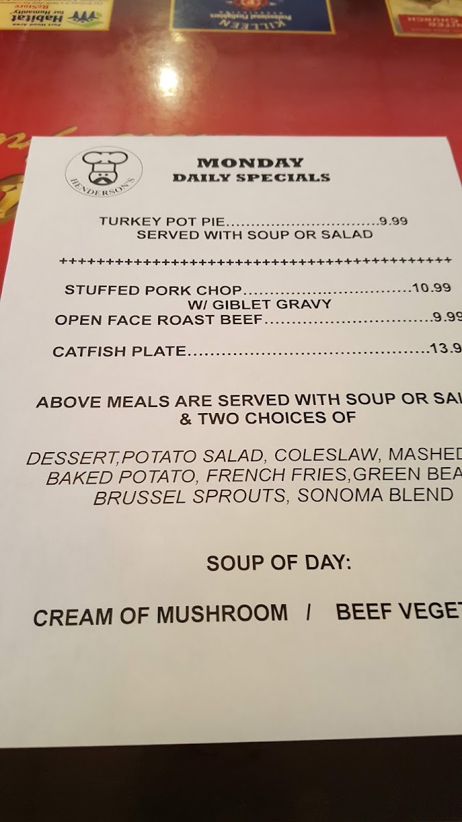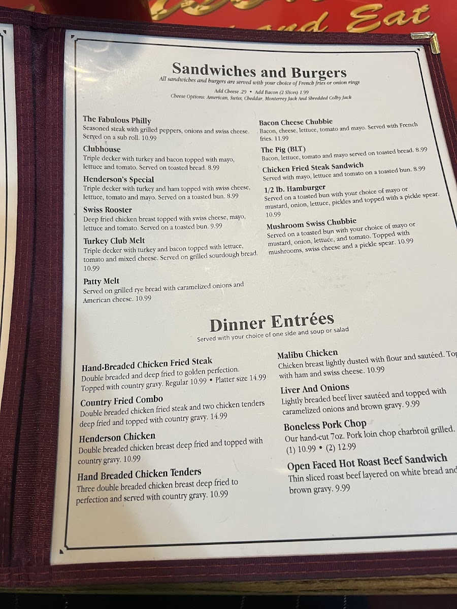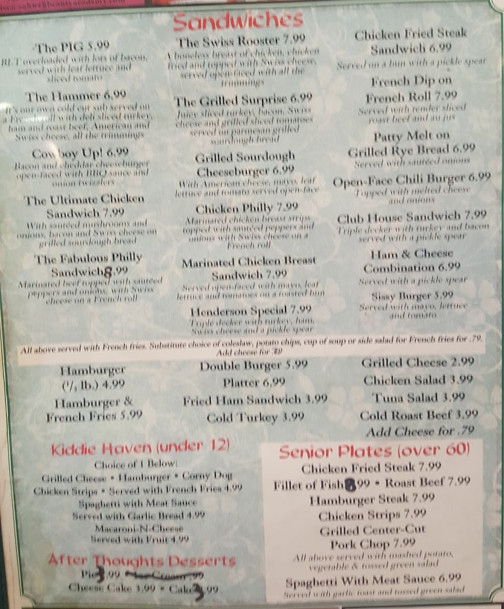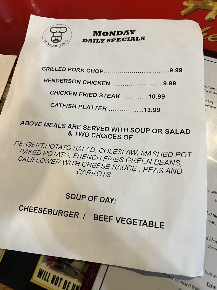Henderson's Family Restaurant offers a straightforward, comforting menu rooted in classic Southern and home-style cooking. The dishes feel familiar and approachable, making it an inviting spot for breakfast, brunch, or a quiet early dinner. Whether you're starting your day with hearty options like the Ham and Cheese Omelet, Breakfast Skillet, or the All Done Breakfast with eggs over medium, the menu has a relaxed, down-to-earth vibe that suits any morning pace.